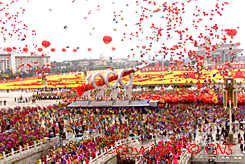 首都各界人民慶祝中華人民共和國50周年大會10月1日在北京隆重舉行,天安門廣場歡聲如潮、彩球飛舞,一派歡樂祥和的氣氛。作者:李剛