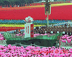 在慶祝建國(guó)五十周年大會(huì)群眾游行“祖國(guó)大家庭”方陣中,澳門彩車十分引人注目。(本社記者天安門城樓傳真)作者:李剛