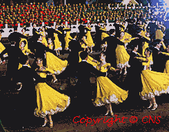 在北京天安門廣場舉行的首都國慶聯歡晚會上,一臺名為“祝福你,祖國”的表演會節目豐富多采。圖為其中的交誼舞表演。作者:王麗南