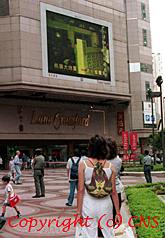 二十一日凌晨臺灣發生強列地震,牽動香港民眾的心,市民在鬧市大屏幕前圍觀電視現場報道,關注災后情況。中新社傳真洪少葵攝