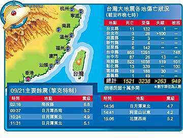 臺灣大地震各地傷亡狀況(截至昨晚七時)