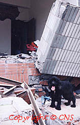 臺中地震災區一只小狗在廢墟徘徊。中新社傳真梁玉驥攝