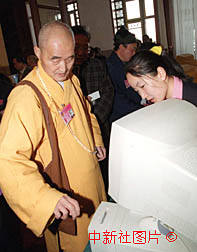 全國政協九屆三次會議三日在北京人民大會堂開幕,圖為宗教界委員通過電腦驗卡進入會場。作者:羅仰明