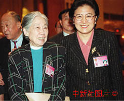 劉少奇的遺孀王光美與政協常委劉延東攜手出席三日開幕的全國政協九屆三次會議。作者:宗金柱
