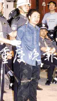 圖文:多行不義必自斃 張君團伙臨終哀嚎 2001年5月21日 11:30 ![]() 馬卡里/圖 ![]() 王大可/圖 ![]() 馬卡里/圖 昨天是“魔頭”張君償還血債之日,就在他將被押赴刑場之前,這個曾經作惡多端,不可一世的“魔頭”發出臨終前的哀嚎,其情其狀可悲可笑。(見圖一) 早上8點之前,張君一干11名罪犯被從市看守所押至市一中級法院等候終審宣判。 因為要“上路”了,一審主訴檢察官谷安東和張君進行了交談。谷告訴張君,19日下午,他的家人分別打來電話要轉告張君幾件事。一是張化名龍海力與楊明燕結婚生了女兒龍××已經被接到湖南老家,問張是否需要改名?張君表示,要把龍姓改成張姓。谷告訴張君,肖月娥和其姐姐說要經常去看陳樂,還要求張君給她們寫封信。聽到這里,張君呆了呆,說“我沒寫”。 隨后,張君和檢察官戴小冬見面,自一審判決后,張君提出要見戴。 坐在地上的張君見到戴小冬(見圖二),麻木的臉上擠出些笑容:“我一直很感激檢察官。今天我說點人話,請你替我轉告。” 戴小冬點頭答應。張君說:“把我的(起訴書)副本和判決書寄給我兒子,讓他們不要怨恨政府,我是想讓他們知道我的罪孽,不要恨政府,政府殺我理所當然。” 他又給自己一出生就帶上恥辱的女兒留話:希望他長大后,找個好男朋友,找個守法的男朋友…… 約一個小時,張君才說完。 戴小冬表示一定幫他轉達到。張君突然道:“檢察官,我給你叩個頭!”說著,身子就要往前傾。戴小冬連忙制止。 之后,本文作者之一開始了對張君的獨家采訪。 作:走到這一步,你對那些被你無辜傷害的人還想說些什么? 張:我只想搶錢,但那些人在我搶錢時妨礙了我。凡是看清楚我的人,我都要打死他,正因為我殺了無辜的人,所以我要再次對他們說聲對不起。 作:現在開庭,你心里肯定明白是怎么回事。此時此刻,你最想說的是什么話? 張:我要感謝抓我的警察。他們抓得很漂亮,以致我自殺都沒成功。否則,我當時自殺了,就沒有今天也沒有機會表達我的悔恨了。 上午10點半以后,三十余輛警車風馳電掣般駛向刑場。 行刑前,留下5分鐘給8名死刑犯,允許他們留下臨終遺言。 法官、檢察官、法警一群人圍住了張君,問他還有什么要話要說。 張君搖搖頭,似乎突然意識到自己的生命只有300秒了,他請求:轉告我的兒女,長大后千萬不要做違法犯罪的事,千萬要轉告給他們。 “還有沒有話說?”執法者給張君最后的機會。 張君想了想,說出最后的“人話”:“我輸得心服口服,我死得心服口服”。 刑場上,另外7名死刑犯也各自在留遺言。 隨著一陣槍聲,這8人結束了罪惡的一生。