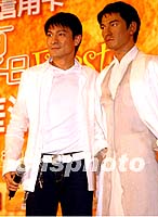 香港著名男歌星劉德華30日在時代廣場為其蠟像揭幕。劉德華是首位獲倫敦杜莎夫人蠟像館制作的香港歌手。首次與自己的蠟像見面的劉德華欣喜的為蠟像整裝。中新社傳真洪少葵攝