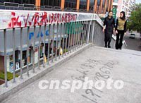 在深圳紅荔路人行天橋上,“私人偵探”的熱線電話和尋呼機號公開亮相,是真是假需路人明目識別。中新社記者 陳文 攝
