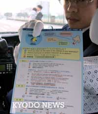 日本出租車以四國語言接待客人 其中包括中文 2002年03月12日 08:36 ![]() 用四國語言記有付錢方法等內容的“輕松乘坐出租車傳單”(共同社)