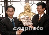圖文:臺北孔廟訪問團一行三十六人來滬交流 2002年03月20日 06:03 ![]() 前來參加此間滬臺兩地“佾舞文化交流”活動的臺北市“民政局長”林正修,今日上午參觀了上海文廟。圖為林正修(圖左)在參觀中。中新社圖 湯彥俊 攝