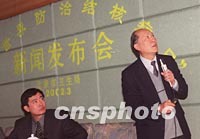 北京市衛生局官員二十一日在“世界防治結核病日”新聞發布會上宣布:北京市將為肺結核病患者免費提供藥物治療。圖為北京市結核病控制研究所屠德華所長介紹:“在世界結核病呈回升趨勢之時,北京市結核傳染源率已降至十萬分之十二”。中新社記者 史利 攝