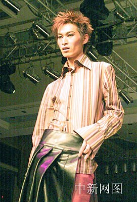 2002-2003秋冬中國服裝流行趨勢發布周昨晚在北京中國大飯店舉行。首場“昂斯”男裝專場表演突破以往設計風格,以高雅的正裝;糅合了運動和流行音樂元素的街頭裝扮等展現了風格迥異的時尚男裝。圖為男模展示各種不同風格的男裝。