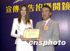 歌星陳慧琳9日在香港出席《職業英語運動》宣傳片開鏡儀式記者會,陳慧琳今天一身文員服飾打扮,從語文教育及研究常務委員會主席田北辰手中接過委任狀,為《職業英語運動》拍攝新一輯宣傳片。中新社傳真 鄧慶樂 攝