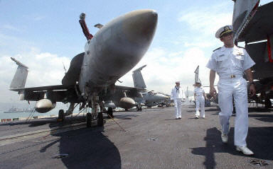 圖:美國航空母艦“小鷹”號今天上午抵達香港