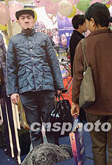 “平民化”歌手雪村以一首《東北人都是活雷鋒》唱響中國(guó),其平凡的影視形象九日出現(xiàn)在“2002年北京國(guó)際電視周”河北電視臺(tái)的展臺(tái)上,用來(lái)宣傳雪村音樂(lè)評(píng)書第三部--30集無(wú)對(duì)白系列喜劇《小王》。中新社記者 鄒憲 攝