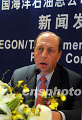 中國海洋石油總公司和荷蘭全球人壽保險公司十三日在上海聯合宣布,兩家公司將按照相同比例共同出資組建一家合資公司,從而在中國開展人壽保險業務。圖為全球人壽保險公司執行董事會主席唐仕德在此次新聞發布會上。作者:湯彥俊