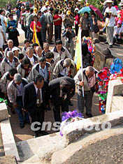 來自世界鄭氏宗親總會、臺北縣鄭氏宗親會、香港鄭氏宗親會等的鄭氏后裔,鄭氏宗親及海內(nèi)外來賓近五千人,二十六日來到福建南安水頭鎮(zhèn)鄭成功陵墓祭奠這位民族英雄。劉可耕 攝