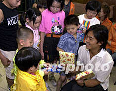歌影紅星鄭伊健及其國際歌迷會成員27日在香港親善探訪保良局,參觀該局兒童宿舍及并與局童共同游玩。鄧慶樂 攝
