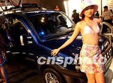 身穿沙灘泳裝的吉普女郎,在北京炎熱天氣里的六月國際車展上充滿濃郁的青春氣息。賈國榮 攝