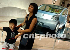 一位年輕的母親和兒子在星期天參觀六月北京國際車展,更對一款日產概念車戀戀不舍。這款將在十年內上市的新品,通過互聯網沖浪將乘客與外界緊密相連,車身的十四臺照相機負責收集周圍環境的多種信息。中新社記者 賈國榮 攝