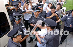 目擊:猥褻兒童案宣判 紅豆衣服捂頭走上囚車(圖) 2002年06月21日 10:05 ![]() 猥褻多名男童的青年歌星紅豆二十日在北京朝陽(yáng)法院被一審判處三年零六個(gè)月的徒刑。圖為紅豆在法庭宣判結(jié)束后,用衣服捂著頭走上囚車。作者:武仲林 核心提示:受人關(guān)注的北京金輪影視文化藝術(shù)有限公司簽約歌手紅豆(本名王立勇)涉嫌猥褻一案,終于有了結(jié)果。昨天,北京市朝陽(yáng)區(qū)人民法院在三樓大法庭進(jìn)行了公開宣判,紅豆被依法判處有期徒刑三年六個(gè)月。 被告請(qǐng)來(lái)兩位律師 昨天14時(shí)30分,朝陽(yáng)法院對(duì)紅豆猥褻一案進(jìn)行宣判,法院根據(jù)《中華人民共和國(guó)刑法》第237條第一、三款,認(rèn)定歌手紅豆猥褻7名男童證據(jù)確鑿,罪名成立,判處其有期徒刑三年六個(gè)月。 法庭上,被告席上坐著兩位辯護(hù)律師,原告席上則坐著一名公訴人員,受害人家屬?zèng)]有到庭。對(duì)此宣判結(jié)果,記者問(wèn)紅豆的辯護(hù)律師是否要上訴,同是來(lái)自河北方圓律師事務(wù)所的李文生、張建棟律師都非常謹(jǐn)慎地說(shuō):“這得和紅豆本人商量后再說(shuō)。”對(duì)于這個(gè)結(jié)果是否在其意料之中,兩位律師都非常客氣地對(duì)記者表示“不好說(shuō)”,而后就匆匆地離開了法庭。 衣服捂頭走上囚車 下午1時(shí)多,記者趕到朝陽(yáng)法院時(shí),已經(jīng)有幾名挎著相機(jī)、扛著攝像機(jī)的記者在門口等著。就在法庭要開庭宣判時(shí),十幾名攝像記者都將鏡頭對(duì)準(zhǔn)了紅豆可能要經(jīng)過(guò)的通道,就在紅豆被四名法警押著走進(jìn)法庭的時(shí)候,三樓大法庭發(fā)生了一點(diǎn)兒騷動(dòng),十幾名攝像記者想沖出法警們的阻攔拍到紅豆走上被告席的瞬間鏡頭,但都被法警和其他工作人員擋住。 記者在旁聽席上看到,身穿白色T恤、深色褲子的紅豆看起來(lái)氣色不錯(cuò),和其以前在公眾面前露相時(shí)相比并未顯出消瘦。紅豆走進(jìn)法庭后一直背對(duì)著旁聽席。審判長(zhǎng)宣讀完判決書后,法警沒有讓紅豆從原來(lái)的通道走出去,而是由一名法警押著從法官的通道很快地消失了。 15時(shí)左右,幾名法警出來(lái)維持秩序,一輛囚車停在了法院大樓西門口,囚車后門已經(jīng)打開。當(dāng)記者們把鏡頭都調(diào)好時(shí),首先出來(lái)的卻是昨天下午宣判的其他案犯,紅豆是倒數(shù)第二個(gè)走出西門的,身穿白色T恤的他用囚衣捂著自己的頭部,在法警們的嚴(yán)密監(jiān)護(hù)下快速地跟在其他犯人后邊上了囚車。 案情經(jīng)過(guò)回放 2000年4月至2001年6月,紅豆在其指導(dǎo)北京某學(xué)校學(xué)生的課程時(shí),利用職務(wù)之便,以玩游戲、請(qǐng)吃飯、釣魚為名,先后將7名男生誘至其家中或朝陽(yáng)區(qū)某賓館客房?jī)?nèi),多次對(duì)男童進(jìn)行猥褻,嚴(yán)重時(shí)甚至超出一般意義的猥褻,并攙雜了金錢交易。 2001年9月8日,校方領(lǐng)導(dǎo)向朝陽(yáng)分局報(bào)案,2001年12月17日公安機(jī)關(guān)將紅豆抓獲歸案,并于12月27日,由朝陽(yáng)區(qū)人民檢察院批準(zhǔn)逮捕。此事被媒體曝光后,引起社會(huì)輿論的一片嘩然。2002年1月,紅豆委托北京寶鼎律師事務(wù)所的田力律師為其辯護(hù)。 2002年4月潘強(qiáng)、于偉昕律師正式代理山西運(yùn)城受害男童,向北京朝陽(yáng)分局提出立案請(qǐng)求。今年的5月8日,紅豆涉嫌猥褻兒童一案在北京市朝陽(yáng)區(qū)人民法院正式立案,6月6日,朝陽(yáng)法院依法進(jìn)行了不公開審理。 紅豆曾說(shuō)愿意服法 記者發(fā)現(xiàn),在昨天的法庭上,紅豆的兩位律師不再是以前媒體所說(shuō)的那位田力律師。下午6時(shí)多,記者撥通了田力律師的電話,他告訴記者,他是在開庭前的兩三天被解除了和當(dāng)事人紅豆之間的代理關(guān)系,對(duì)于其中的緣由,田律師表示“原因比較復(fù)雜”,一言難盡。田力律師說(shuō),在和紅豆接觸時(shí),紅豆就曾表示過(guò)如果判刑,就“愿意服法”。 猥褻兒童罪不分性別 康德律師事務(wù)所的魏勝律師認(rèn)為,現(xiàn)在我國(guó)刑法中的猥褻犯罪是從以前的流氓罪中分離出來(lái)的,猥褻兒童罪還沒有具體區(qū)分性別。根據(jù)我國(guó)刑法第237條規(guī)定,以暴力、脅迫或者其他方法強(qiáng)制猥褻婦女或者侮辱婦女的,處五年以下有期徒刑或者拘役,聚眾或者在公共場(chǎng)所當(dāng)眾犯前款罪的,處五年以上有期徒刑,猥褻兒童的,依照前兩款的規(guī)定從重處罰。 “安康大使”已換人 據(jù)了解,去年6月份,中國(guó)兒童青年基金會(huì)相中了歌手紅豆,聘其作為“安康計(jì)劃”形象大使。而紅豆涉嫌猥褻兒童的消息被媒體披露后,基金會(huì)正式將紅豆的“安康”形象大使取消。2002年6月10日,中國(guó)兒童青年基金會(huì)在眾多專家和媒體的嚴(yán)格審核之下,安康新大使正式出爐,亞洲歌后那英和“新世紀(jì)中國(guó)第一男模”李學(xué)慶成為新一任“安康形象大使”。?(郭志霞) 聲音 紅豆給那些孩子造成的也許是一生的陰影,可法律只能判處紅豆三年多的徒刑,也許三年半過(guò)后,紅豆又像他的某些前輩一樣重新回到舞臺(tái)上作秀。所以,落水狗必須痛打,不要再給它跳出來(lái)惡心我們和危害社會(huì)的機(jī)會(huì)。(
