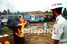 銷毀假冒軍車現(xiàn)場