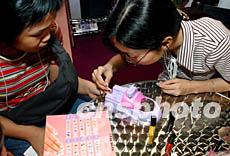 來自臺灣的“美甲器”日前在香港美容博覽會上尋找商機,這種只需花幾分鐘就能在指甲上涂上美麗圖案的小機器,受到香港少女喜歡。潘索菲 攝
