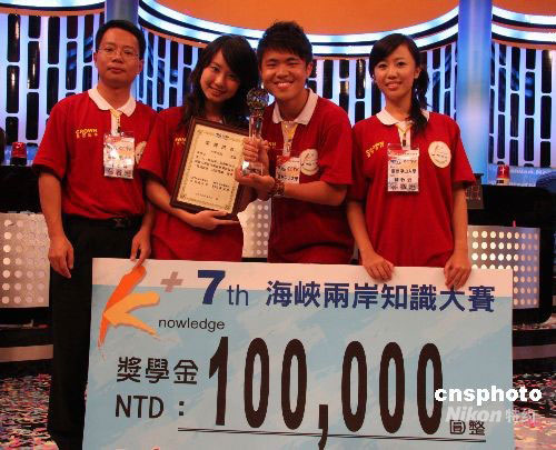第七屆“海峽兩岸知識大賽”五日在臺北落幕,來自廣州中山大學的選手獲得總分第一。中新社發 耿軍 攝