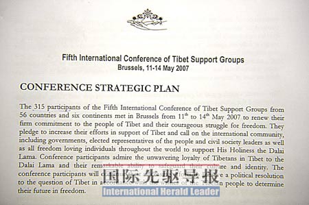 5月14日下午會議結束后,本報記者輾轉從一位外國同行那里得到一份會議結果文件。這份長達6頁的文件講述了“西藏流亡政府”及支持西藏國際組織今后幾年的“戰略計劃”以及具體的“行動計劃”。