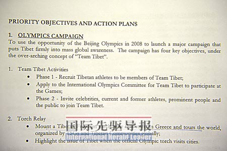 “行動計劃”將針對北京奧運會采取行動列為第一點。文件提出該行動有4大目標,并要在全球范圍內招募人員組建一個名為“西藏之隊”(Team Tibet)的隊伍,專門針對奧運會采取行動,目標人員包括“知名人士、現役和退役運動員、杰出人士和民眾”。現在看來,連搶金晶火炬的洛桑·甘丹這類暴徒也是“西藏之隊”網羅的對象。