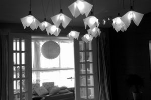 如果是大家族過年,而且原有空間只有一個吸頂燈,那么整個空間的光源就會顯得過于單一。建議在房間客廳的四角安裝中式的大紅燈籠(瘦長型),燈頭可使用20瓦的螺旋節能燈(照明度非常強,因為要考慮燈光穿過布紗的光耗損失量)。這樣既讓頂面的空間層次有了錯落的變化,又能通過燈的顏色增添節日氣氛,也不會因為光線太暗而使人視覺疲勞。