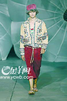 比利時(shí)設(shè)計(jì)師AnnDemeulemeester在他的2006年春夏男裝中,就透露了不少優(yōu)雅秀麗的女性元素。寬大的外衣滑落在肩膀上露出里面背心的一角,起皺的棉布馬甲顯出模特裸露的肌膚,褲子卷起到小腿,蓬亂的頭發(fā)讓模特們透著一種男性和女性共有的單純。而類似的寬松設(shè)計(jì)到了AlexanderMcQueen手中,也有了一番新的搞作,他的2006年男裝春夏系列顯得非常另類,外衣和褲子都很寬大,但材質(zhì)都是比較自然,然后還不失時(shí)機(jī)地加上釘珠設(shè)計(jì),配上涼拖鞋,好一派夏天的悠閑感覺(jué)。(來(lái)源:羊城晚報(bào);作者:黃嘉麗)