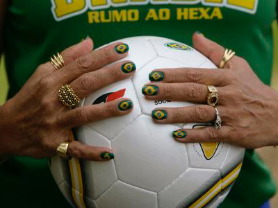 在這個(gè)正值世界杯的夏天,看一眼蒼白的指甲,僅僅用單色甲油紅潤(rùn)氣色已不足以體現(xiàn)情趣和時(shí)尚,06初夏指甲流行情報(bào)是:把球隊(duì)隊(duì)旗畫(huà)在指甲上。不少美甲小店紛紛一副標(biāo)價(jià)45元的水晶指甲也打出了世界杯的旗號(hào),仔細(xì)一看才發(fā)現(xiàn),這水晶指甲的甲面上竟是英格蘭、巴西、法國(guó)和意大利球隊(duì)的隊(duì)旗。店主表示,這是為世界杯特意趕制的,隨著世界杯球賽的推進(jìn),店內(nèi)的甲面將逐漸增加的到32種,以滿(mǎn)足球迷MM們的需要。