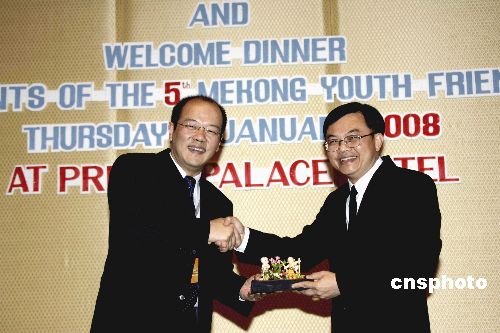 一月十七日,泰國社會發展與人類保障部副部長蓬得·炳巴提在曼谷禮節性會見了來自大湄公河次區域的中國、緬甸、泰國、柬埔寨、老撾和越南六國的青年代表,并分別與中國等六國青年代表團合影。中新社發 孫宇挺 攝