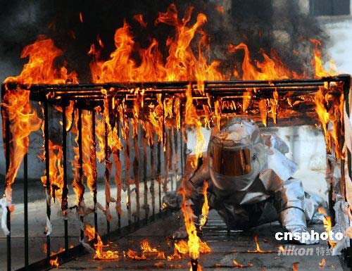 4月29日,90名三峽消防官兵在巍巍三峽大壩下,集體宣誓:確保奧運圣火在三峽壩區順利傳遞。當天,三峽特勤消防大隊還開展了“迎奧運倒計時100天”大比武活動,不斷提高部隊快速反應和處置突發事件的能力。中新社發 方佩 攝
