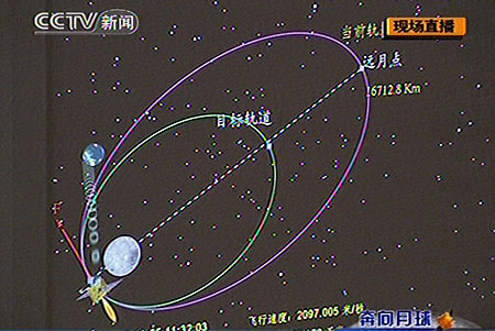 圖:嫦娥一號(hào)衛(wèi)星第一次近月制動(dòng)開始