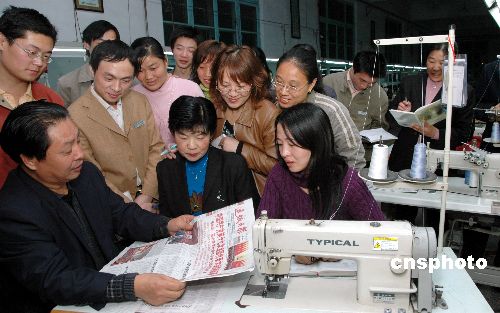圖:山西運城一民企員工在車間學“十七大”