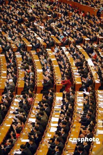 圖:代表鼓掌祝賀吳邦國再次當選委員長