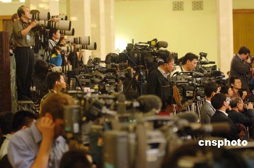 3月18日上午,十一屆全國人大一次會議在北京人民大會堂閉幕,國務院總理溫家寶于會后率李克強、回良玉、張德江、王岐山四位副總理會見中外記者。中外媒體云集總理記者會。中新社發 王東明 攝