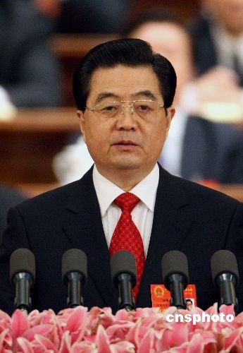 第十一屆全國人民代表大會第一次會議在圓滿完成各項議程后,3月18日上午在北京人民大會堂閉幕。國家主席胡錦濤在閉幕會上講話博得代表們熱烈掌聲。中新社發 任晨鳴 攝