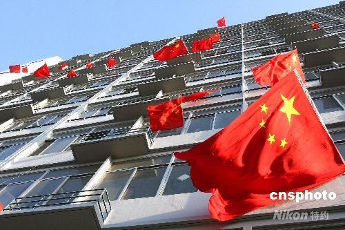 4月22日,北京理工大學(xué)多處宿舍樓紛紛掛出國(guó)旗,理性表達(dá)愛(ài)國(guó)熱情,其中毗鄰?qiáng)W運(yùn)場(chǎng)館的北理工體育館新1樓南側(cè)掛有近70面國(guó)旗。據(jù)了解,該樓住有各學(xué)院的本科生逾2000人,上周六便有人掛起國(guó)旗,21日午后雨過(guò)天晴后不少宿舍紛紛響應(yīng)。該校新聞發(fā)言人賀亞蘭表示,學(xué)生在自己宿舍掛國(guó)旗,是理性的正常愛(ài)國(guó)舉動(dòng)。中新社發(fā) 鄭雄增 攝