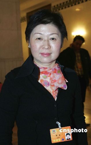 三月九日,屬于新階層的全國政協委員、曾經排行女首富的張茵,以低調姿態參加在北京人民大會堂舉行的政協全體會議。近日,張茵因在政協會議上提出建議降低富人稅負,把月薪10萬元以上的最高累進稅率從45%減至30%等提案,被人認為是為富人說話而引起爭議。出生在黑龍江的“紙業大王”、玖龍紙業有限公司董事長張茵通過廢紙回收再生產致富,成為2006年胡潤百富榜內地首富,也是中國第一位女首富。中新社發 潘索菲 攝