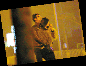本月24日晚,北京,音樂才子李泉和友人在保利大廈后的餐廳共享大餐后,和一名身穿裘毛大衣的神秘女子一起離開,站在路邊等待出租車時(shí),李泉表現(xiàn)得憐香惜玉,毫不避諱地將這名女子攬?jiān)趹阎校瑯O為親密曖昧,兩人關(guān)系可見非同一般。當(dāng)這名女子轉(zhuǎn)向鏡頭時(shí),記者認(rèn)出是MTV全球音樂電視臺(tái)主持人朱珠。兩人卿卿我我,沉醉在甜蜜氛圍中,完全忘卻了北京的寒風(fēng)。之后,兩人乘坐出租車離去,上車后,終于激情難耐,相擁熱吻。
