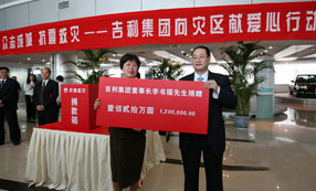 吉利集團在第一時間展開了專題會議,開展捐車、捐錢、獻血活動,首批捐款突破千萬。其中吉利集團董事長李書福當場個人捐款120萬元。<新聞回顧>