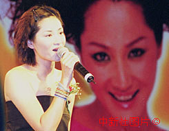中國聯想集團二十七日在北京召開以“時尚本色,精神生活”為主題的聯想射雕Modem形象代言人簽約暨產品展示會,推出中國著名影視、歌、模特瞿穎作為新產品形象代言人。中新社記者 錢興強 攝