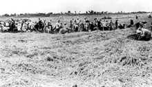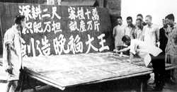 雞公山水稻畝產(chǎn)四萬八真相 2000年7月7日 14:09 ![]() 安徽省樅陽縣一塊號稱畝產(chǎn)1·6萬斤的 “衛(wèi)星田”。田里的稻子是從各地移來的 ![]() 大躍進中,農(nóng)民表決心。照片據(jù)《圖片中國百年史》 □張勝林(河南信陽) 1958年9月1日,信陽縣雞公山人民公社新集大隊放出河南省水稻畝產(chǎn)特大“衛(wèi)星”:6畝6分3厘干部水稻試驗田總產(chǎn)324375·5斤,平均畝產(chǎn)48925·7斤。這顆大“衛(wèi)星”升天后,新華社隨即發(fā)了消息,轟動全國。全省各級領導親臨參觀和總結(jié)經(jīng)驗,9月9日《河南日報》第二版以“雞公山上紅旗插,水稻畝產(chǎn)四萬八”的醒目標題,對大“衛(wèi)星”的組織施放作了詳細報道。 這個被大躍進狂風吹起來的水稻“衛(wèi)星”,雖在當時被歌頌為信陽人民農(nóng)業(yè)大躍進的偉大創(chuàng)舉,卻留下了一個謎:照“衛(wèi)星”田里的水稻總產(chǎn)量計算,那么,這塊“衛(wèi)星”田平均每平方米就得產(chǎn)出稻谷73斤。然而,73斤稻谷就是放在一平方米的空地里,也要堆出一定高度,何況稻谷結(jié)在稻穗上,直徑3毫米左右的稻莖又如何承受得了呢? 為了解開這個謎,我們對當年目睹現(xiàn)場的一些同志進行了反復調(diào)查訪問。在調(diào)訪過程中,這些同志不僅幫助我們弄清了雞公山水稻畝產(chǎn)“四萬八”的真相,而且訴說了雞公山人民當年吞下這個苦果的難言之苦。信陽縣越改越大的躍進規(guī)劃 1957年,信陽縣和全國一樣,勝利實現(xiàn)和超額完成了國民經(jīng)濟第一個5年計劃,各條戰(zhàn)線出現(xiàn)了蓬勃發(fā)展的局面。然而,由于從上到下對成績的宣傳夸張,使一些干部的頭腦發(fā)熱,在指導方針上出現(xiàn)了急于求成的“左”的冒進。1958年2月26日,中共信陽縣委召開擴大會議,制定并通過了《信陽縣全面躍進20條規(guī)劃》,號召和動員全縣人民投入到大躍進的洪流之中。 1958年5月,黨的八大二次會議通過總路線:“鼓足干勁,力爭上游,多快好省地建設社會主義”,在信陽縣宣傳貫徹后,信陽掀起了大躍進的高潮。同月底,中共信陽縣委、縣人委對《信陽縣全面躍進20條規(guī)劃》進行了補充修改,把1958年全縣糧食總產(chǎn)量從原規(guī)劃的8·5億斤提高到“保證實現(xiàn)14億斤,爭取18億斤”(這樣驚人的數(shù)字,信陽縣不僅當年沒有實現(xiàn),就是時隔30多年后農(nóng)業(yè)年景比較好的1996年,全縣糧食總產(chǎn)量也才達到9·5億斤,為1958年規(guī)劃14億斤的67·8%)。同時,中共信陽縣委還提出“十年規(guī)劃,一年實現(xiàn)”的躍進口號。外地衛(wèi)星的刺激 1958年6月,廣東省早稻畝產(chǎn)82525斤和河南省西平縣小麥畝產(chǎn)7320斤,這兩顆“衛(wèi)星”消息傳到信陽縣后,信陽縣感到鼓舞和震動。7月5日,中共信陽縣委召開擴大會議,縣委提出:“必須認識到今年是農(nóng)業(yè)生產(chǎn)大躍進的一年,不是要求增產(chǎn)幾成的問題,而是要翻幾番。因此,必須鼓足干勁,爭取更大勝利”。為了放出信陽縣的農(nóng)業(yè)高產(chǎn)“衛(wèi)星”,縣委要求“樹立敢想、敢說、敢作、敢為的前進思想,從而解放思想,破除迷信”。 7月,全國宣傳貫徹毛澤東主席關于把工、農(nóng)、商、學、兵組成為一個大公社的指示,信陽縣聞風而動,在全信陽地區(qū)率先建立人民公社。7月22日,中共信陽縣委在雞公山召開擴大會議,決定撤銷全縣32個鄉(xiāng)、鎮(zhèn)及一個辦事處,成立12個人民公社?h委要求,各公社要借人民公社化的東風,更好組織農(nóng)業(yè)生產(chǎn)大躍進,并示意試辦農(nóng)業(yè)“衛(wèi)星”田塊。 縣委擴大會議結(jié)束后,各公社開始籌劃具有本地特色的農(nóng)業(yè)“衛(wèi)星”,棉花、玉米、紅薯等都被列入“衛(wèi)星”計劃之列。雞公山準備水稻“衛(wèi)星” 在籌劃“衛(wèi)星”時,地處豫鄂交界的雞公山人民公社黨委提出,淮河北的西平縣能放出小麥畝產(chǎn)七千三的全國大“衛(wèi)星”,我們淮河南的雞公山為何不能利用我們盛產(chǎn)水稻的優(yōu)勢,放出水稻高產(chǎn)“衛(wèi)星”?只要有雄心,思想再解放,“衛(wèi)星”定能升天。為了選準“衛(wèi)星”的試點,公社黨委曾幾次召開會議研究,最終選擇新集大隊的一塊6畝6分3厘干部試驗田作為“衛(wèi)星”點。 這塊試驗田在5月5日秧苗移栽時,采用了3×3(行距、株距各3寸)的密植法,加之向這塊試驗田投放的肥料較多,公社黨委因之認為,這為我們秋收放“衛(wèi)星”奠定了基礎(經(jīng)過實踐證明,3×3的密植法是一種違反科學的技術躍進,它不僅破壞了光合作用,而且也不利于農(nóng)田管理,但3×3的密植法當時卻作為農(nóng)業(yè)現(xiàn)代化在全縣推廣)!罢{(diào)兵借將” 8月下旬,水稻已經(jīng)基本成熟,臨近收割。雞公山公社黨委于8月下旬連續(xù)開會,研究如何放出水稻高產(chǎn)“衛(wèi)星”。公社黨委認為,能否成功放出水稻高產(chǎn)“衛(wèi)星”,不僅取決于黨委的信心,而且也取決于黨委一班人的統(tǒng)一認識和統(tǒng)一口徑(所謂統(tǒng)一認識、統(tǒng)一口徑,就是要求黨委每個成員不要對放水稻高產(chǎn)“衛(wèi)星”持任何懷疑態(tài)度,“衛(wèi)星升天”是全社人民的驕傲,也是全縣人民的光榮);而且在向上級匯報中,不準說三道四。這成為雞公山黨委在組織施放水稻高產(chǎn)“衛(wèi)星”中