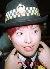 ‘21日,香港歌星葉佩雯以她青春及健康形象宣傳道路交通安全的重要性。中新社傳真 鄧慶樂攝