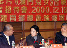 為慶祝澳門回歸祖國一周年,《澳門兒女》首映式將于17日在澳門舉行,該影片是迄今為止唯一一部以澳門回歸祖國為背景和題材的電影。劇中女主角劇雪(中)等在澳門出席記者會。中新社記者 滿會喬 攝