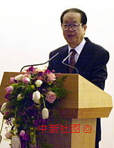 國務(wù)院副總理錢其琛十九日在澳門特區(qū)成立一周年慶祝晚宴上發(fā)表講話。中新社傳真 宗金柱 攝