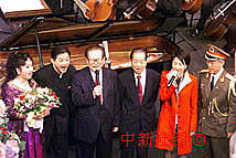 江澤民主席與錢其琛、于永波以及香港歌唱家莫華倫同臺高歌。中新社傳真 滿會喬 攝