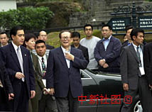 國家主席江澤民二十日下午到澳門名勝大三巴牌坊、大炮臺及澳門博物館參觀。中新社傳真 宗金柱 攝